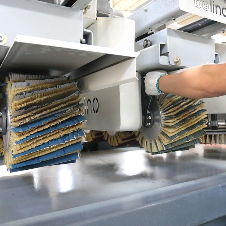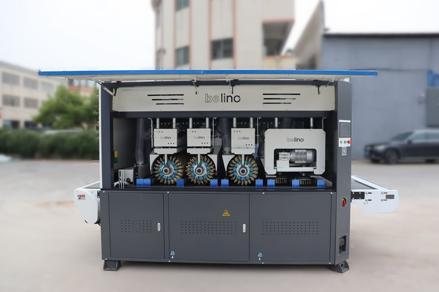 ⑨采用圓盤砂、多輥、螺旋輥組合,不僅使打磨砂光變得輕松、高效、優質,并幫助許多工廠大幅度降低勞動人手,提高生產效率和生產質量,同時降低人員與磨料成本,提高利潤空間