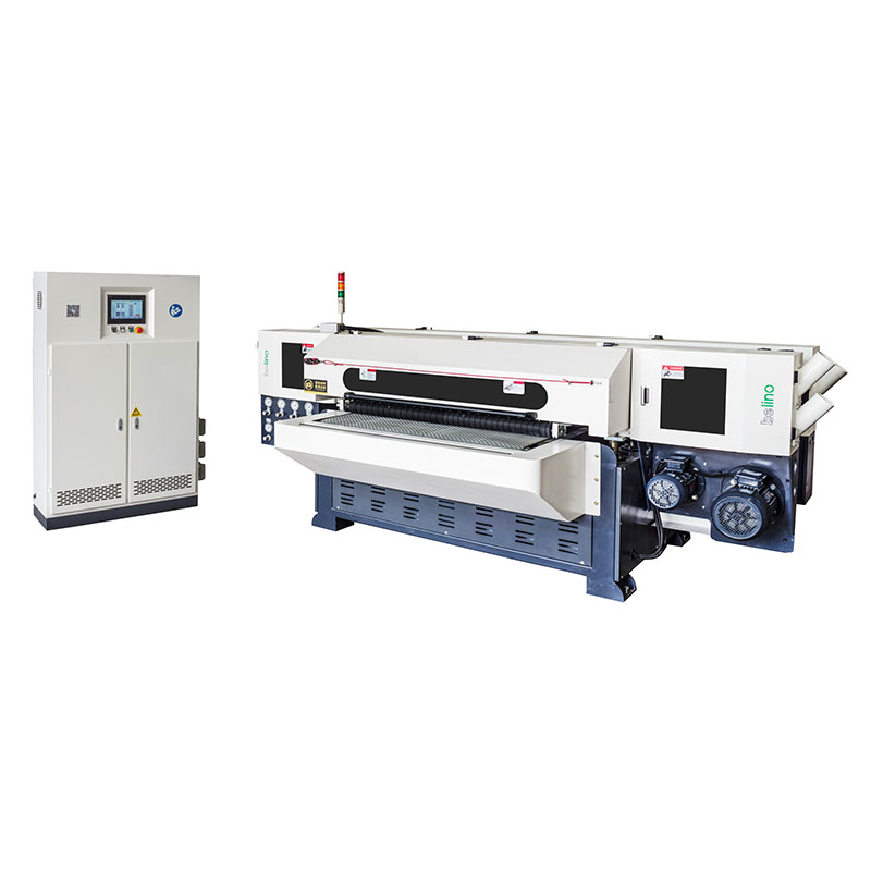 琴鍵式砂光系統搭配高配的獨立式襯帶結構,減少木皮纖維的紋理縱深,通過自動調節琴鍵壓墊單元的削砂力度,使產品不會出現砂穿或漏沙現象,而且輸送臺帶真空吸附功能,解決傳統平面砂光機(即精準定厚砂光)對于厚度不均的木料“一砂就穿,一砂就漏”的難題。